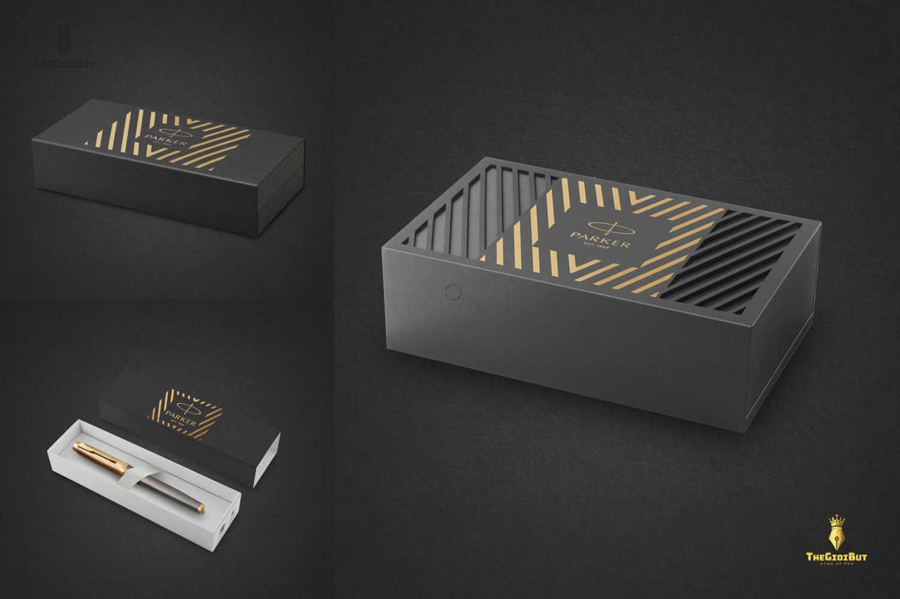 Chiếc Parker Ingenuity Pioneers này được đặt trong một hộp quà tặng chính hãng của Parker, chiếc hộp được thiết kế cơ chế đóng gập với họa tiết chevron được in trên nặp hộp xen kẽ logo tinh tế và sang trọng. Bên cạnh cây bút Ingenuity, hộp quà còn đi kèm với một hộp mực dài màu đen, một hộp mực dài màu xanh và tờ rơi bảo hành, đảm bảo bạn có trọn vẹn trải nghiệm và sự lựa chọn đa dạng khi sở hữu sản phẩm này.