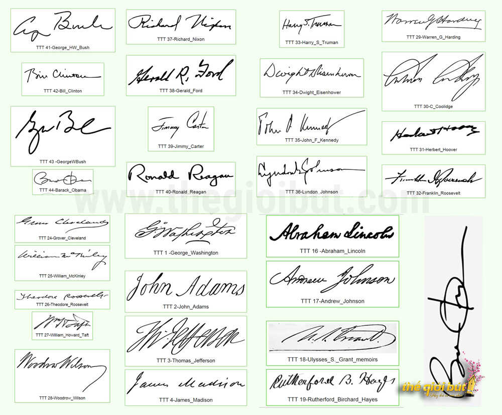 Chữ ký của các đời tổng thống Mỹ thường rất dài và rõ ràng