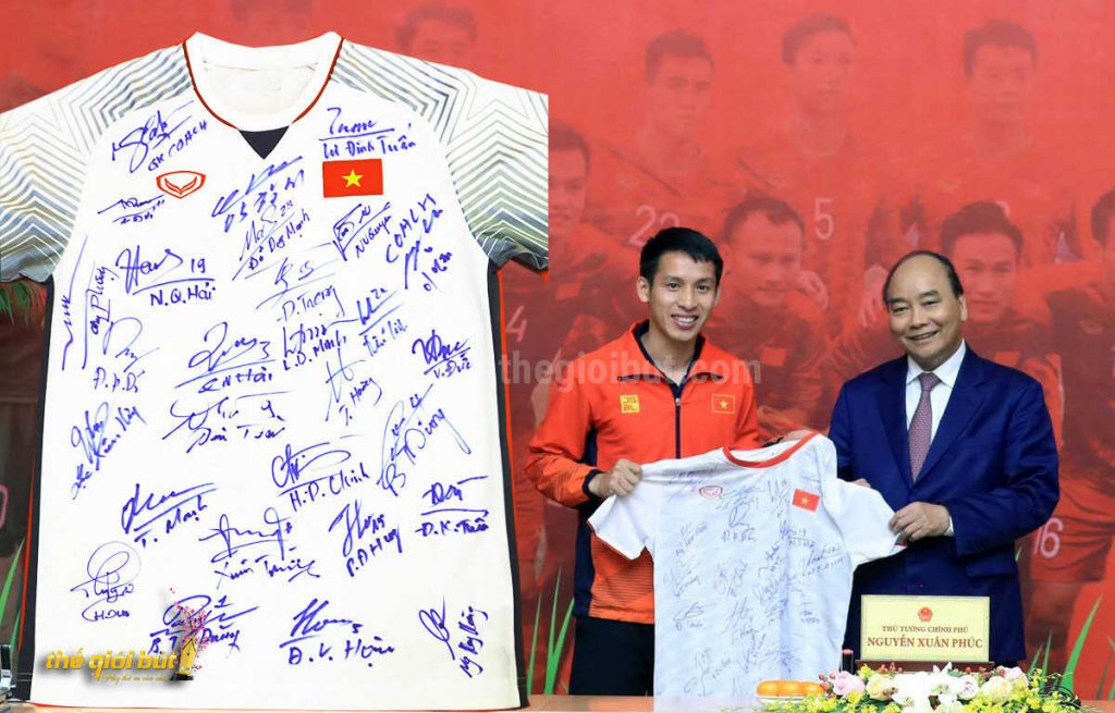 Chữ ký của các tuyển thủ bóng đá Việt Nam trên áo thi đấu