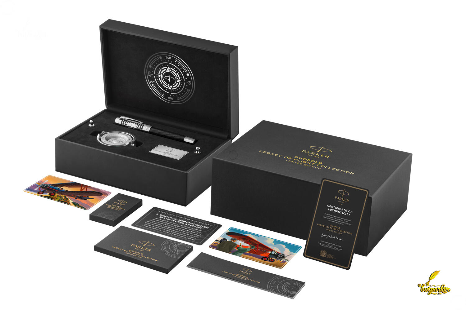 Bộ sưu tập Parker Legacy of Flight Collection không phải là một sản phẩm đơn lẻ mà là một tập hợp các mẫu bút cao cấp được phát triển dựa trên những dòng bút kinh điển của Parker, lấy cảm hứng từ lịch sử hàng không. Các phiên bản này đều mang họa tiết tô điểm gợi nhớ radar, bản đồ bay và tinh thần chinh phục bầu trời — kết hợp với nền đen và chi tiết chrome hoặc palladium đặc trưng.