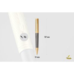Bút bi xoay Parker Ingenuity Pioneers Ballpoint Pen 2200952 có chiều dài tổng thể khi đóng nắp là 127mm. Đường kính thân bút nơi to nhất là 14mm, trọng lượng khoảng 38g. Khối lượng vừa phải giúp cho người cằm có cảm giác rất chắc tay. Chính đều này sẽ giúp cho bạn kiểm soát tốt nét chữ của mình khi lướt trên giấy. Cầm cây bút trên tay, bạn sẽ có cảm giác như chiếc viết máy này được tạo nên từ hàng trăm bàn tay của những nghệ nhân hàng đầu thế giới vậy.