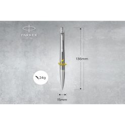 Bút bi Parker Urban 2017 Silvered Powder CT Ballpoint Pen 1931578 có thân được làm bằng nguyên liệu cao cấp đồng thau. Đây là loại vật liệu được xem là cao cấp nhất hiện nay, có độ bền cực tốt – có thể chống lại mọi khả năng ăn mòn – chịu được tác động của môi trường… Bên cạnh đó lớp vỏ còn được phủ 1 lớp sơn mài cao cấp với nhiều màu sắc khác nhau cho bạn dễ dàng lựa chọn. Thiết kế hình viên đạn độc đáo, nổi bật về mặt thị giác và cân bằng hoàn hảo cho trải nghiệm viết thú vị.