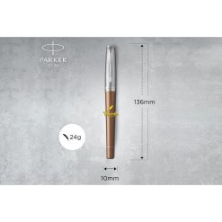 Bút dạ bi Parker Urban 2017 Dark Orange CT Rollerball 1975538 có thân được làm bằng nguyên liệu cao cấp đồng thau. Đây là loại vật liệu được xem là cao cấp nhất hiện nay, có độ bền cực tốt – có thể chống lại mọi khả năng ăn mòn – chịu được tác động của môi trường… Bên cạnh đó lớp vỏ còn được phủ 1 lớp sơn mài cao cấp với nhiều màu sắc khác nhau cho bạn dễ dàng lựa chọn. Thiết kế hình viên đạn độc đáo, nổi bật về mặt thị giác và cân bằng hoàn hảo cho trải nghiệm viết thú vị.