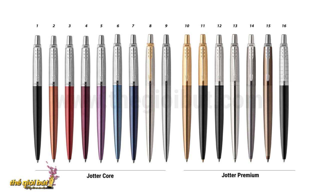Trải qua nhiều năm hình thành và phát triển Parker Jotter có một số dòng như: Parker Jotter Originals, Parker Jotter XL, Parker Jotter Pastel, Parker Jotter Premium, Parker Jotter Special Edition London. Dưới đây là một số sản phẩm bút bi Parker Jotter chính hãng do butparker.vn – nhà phân phối bút Parker tại Việt Nam cung cấp. Dòng bút Parker Jotter là dòng bút bình dân cho mọi đối tượng người dùng, giá của nó từ 386.000 – 1.500.000 đồng. Thân bút làm bằng nhựa kết hợp với thép không gỉ, có thể khắc trên nắp bút hoặc in trên thân bút.